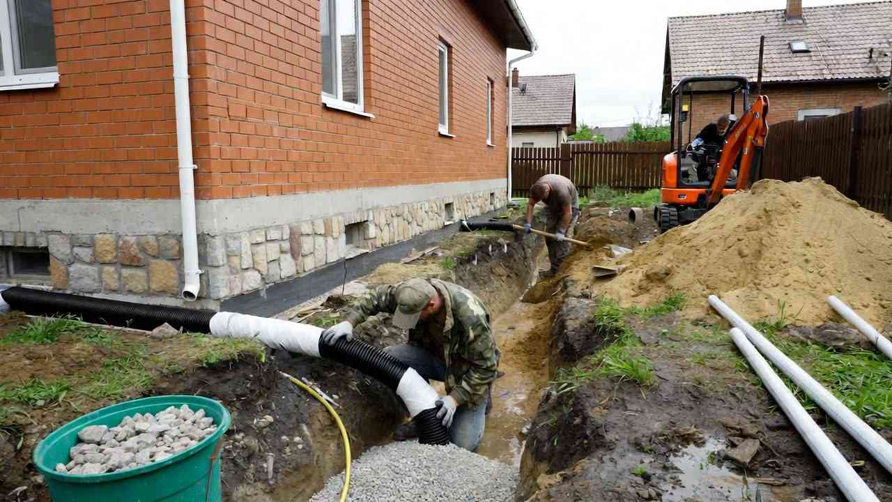 💧 Профессиональный монтаж дренажной системы вокруг дома в Ставрополе от компании Персонал 360. Кольцевой, пристенный, глубинный дренаж участка. Защитите фундамент от грунтовых вод и осадков. Опытные специалисты, качественные материалы, доступные цены.